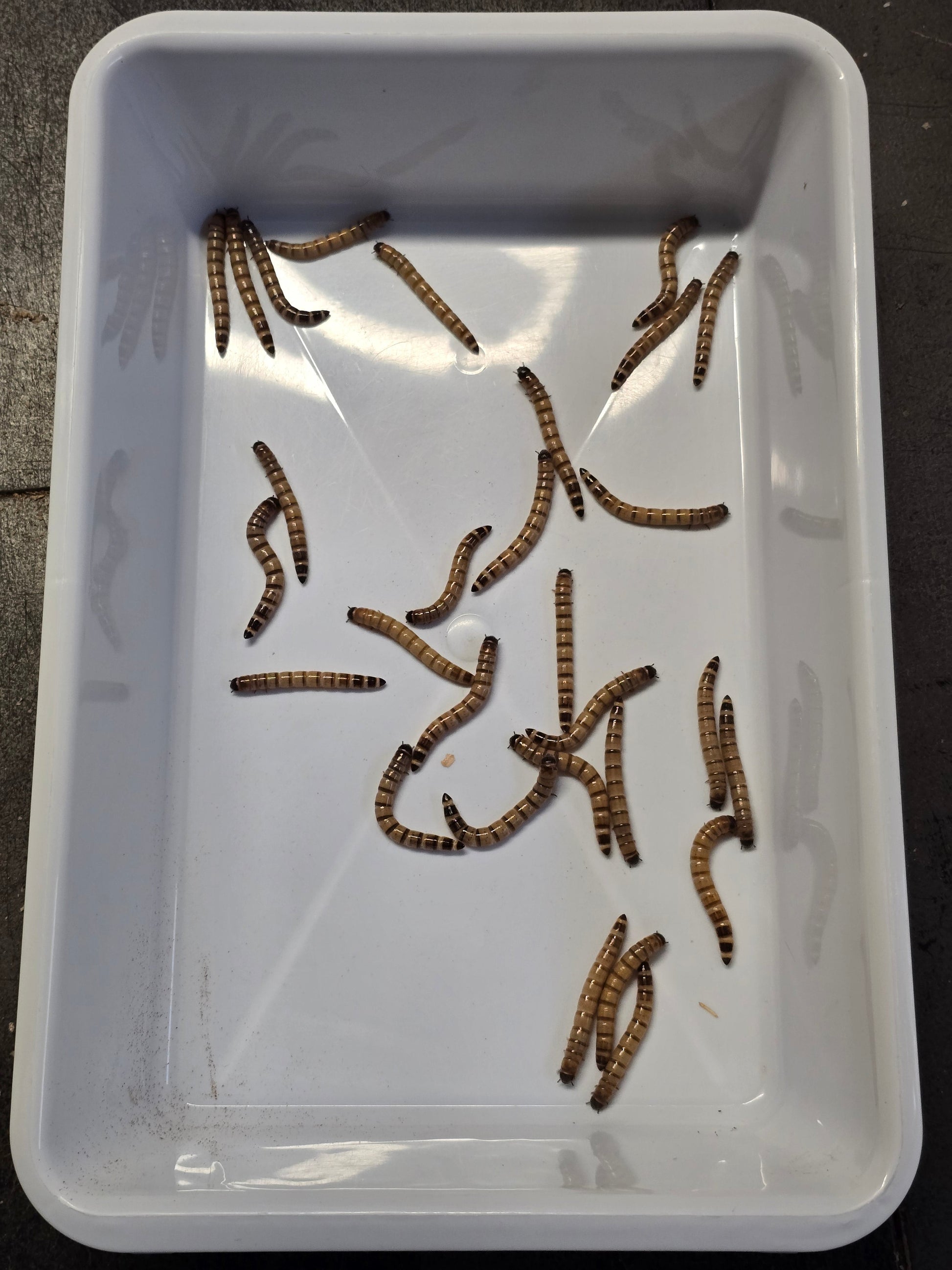 Le ver de Morio est une larve de coléoptère très appréciée comme aliment pour reptiles, oiseaux, amphibiens et poissons. Sa grande taille (4 à 5 cm), sa texture souple et sa richesse en protéines en font une source d’énergie idéale pour la croissance et la récupération de vos animaux. C’est aussi un complément apprécié pour les animaux en convalescence ou ayant besoin de reprendre du poids.